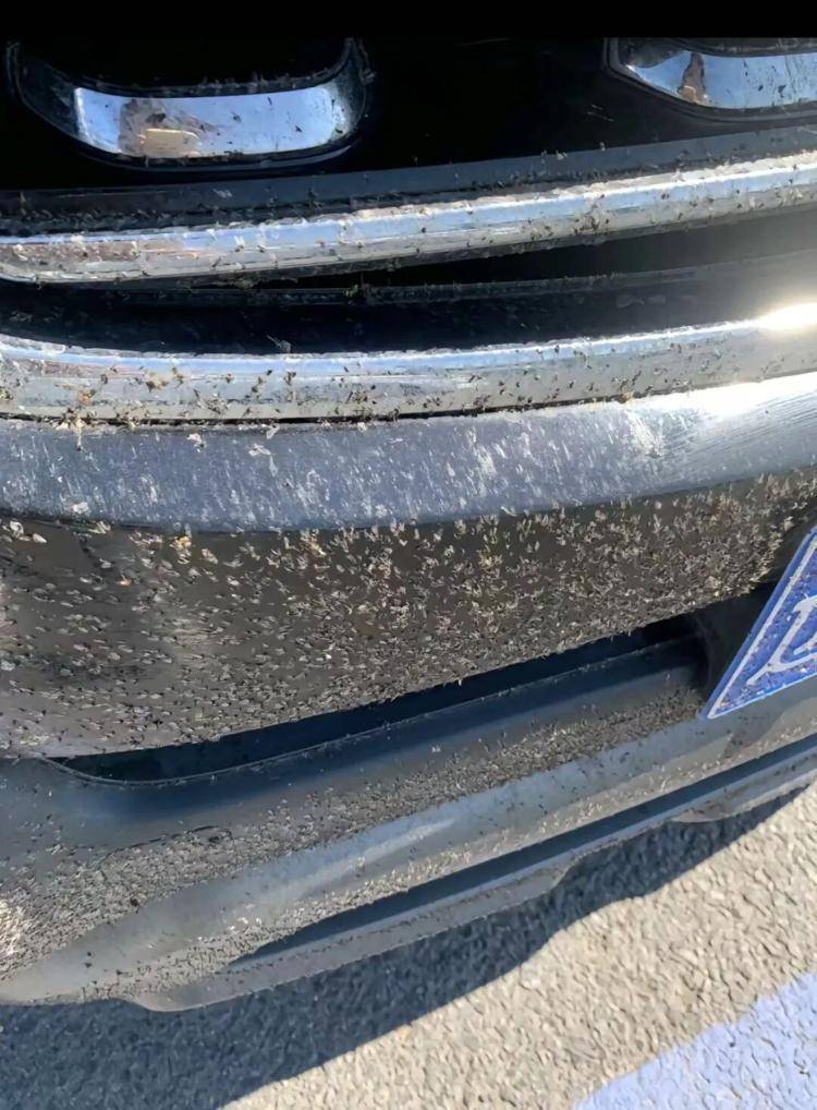 车上歇满飞虫。图/视频截图