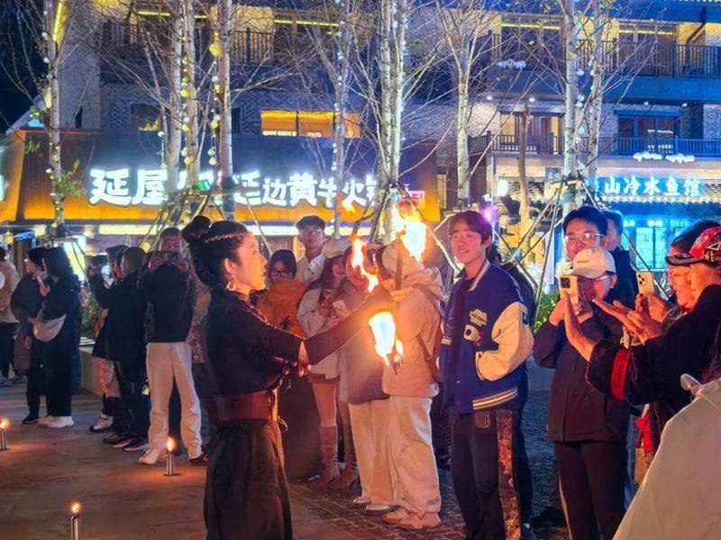 满式民谣酒馆、云顶火塘民谣唱出关东文化的悠远神秘,非遗手作串联古今浪漫,花车巡游、萨满演绎、火舞表演……一个个沉浸场景,让游客“看得见、留得下、玩得久”。